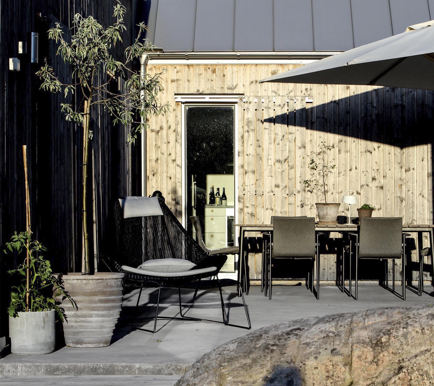 Das Designerduo Strand+Hvass haben die Breeze-Serie entworfen. Breeze wurde mit sowohl Lounge- als auch Essgruppenmöbeln gestaltet. Sie bietet einen einheitlichen ästhetischen Ausdruck und lässt sich überall im Freien verwenden. Die Serie wurde aus dem einzigartigen Cane-line Geflecht, Cane-line Weave®, gefertigt, bei dem transparentes und leicht erscheinendes Aussehen mit hohem Komfort verbunden wird, da sich das Material der Körperform und -Bewegung anpasst.